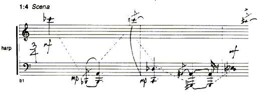 There are a number of other compositional devices used in Through the Sharp Hawthorn, many of which are fairly simple versions of the transformations explored in the Sextet. More than any other piece, however, this one depended on what had gone on before in an organic and intuitive way. Of far more interest here is the basic structural detail, the symmetry of which I had not used in a piece until this one.