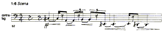 show the similar recurring development of the 'chorus' elements through this section. There is no single theme as with the verse, but a basic idea, (the repeated note), each with a particular dynamic shape, (see ex 4:4 & 4:12), with various 'links' and other decorations. As can be seen the whole process is, at least in result, highly intuitive, with growing references to the verse theme as the passage progresses. In fact, both verse and chorus each tend towards the same rhythmically charged climax at figure 9.Following this climax is a codetta and an interlude-like passage. This has a similar, although less important, function as the 'cloud' interlude in the Sextet. As there, this passage represents a 'pause' in the action, an area that is 'outside' the main drama. Here, the passage is shorter and has less significance in structural terms than the Sextet's 'clouds'. However, I felt and feel that this passage (and its reflection towards the end of the piece are successful and appropriate, not least because of the place they could be seen to represent in the drama of King Lear. The music is not programmatic, but as was mentioned above, the structure of the play had some significance; at some point in the piece, (just after the storm and just before Lear points out that "Through the Sharp Hawthorn Blows the Cold Wind"), Lear's wits "begin to turn", and following this, the whole power base of the country in inverted. This passage seems to me to be a very appropriate musical metaphor for 'turned wits'.